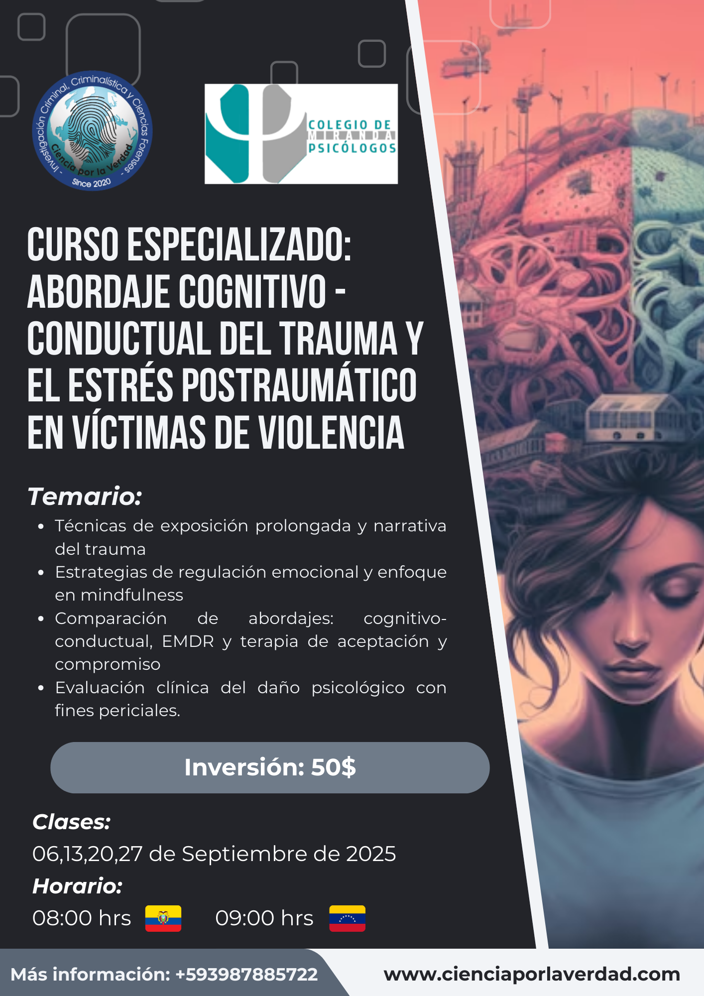 Este curso especializado está diseñado para brindarte una formación práctica, estructurada y basada en evidencia sobre la intervención clínica en casos de trauma complejo y Trastorno de Estrés Postraumático (TEPT), especialmente en contextos de violencia interpersonal, institucional o estructural.